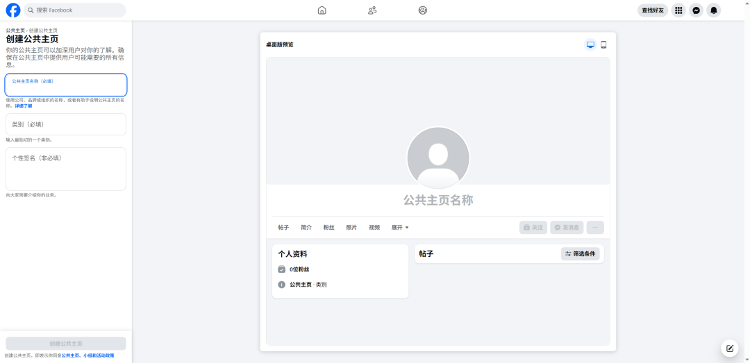 要在Facebook上开展营销活动,首先需要一个公共主页(Page),它是为企业、品牌或组织创建的专用页面,用于与粉丝互动和推广信息。