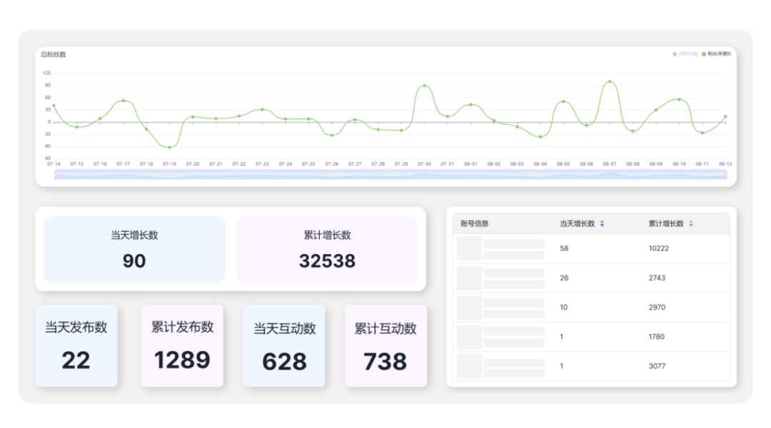 页面概览(Overview):快速查看覆盖人数、互动量和粉丝增长情况。