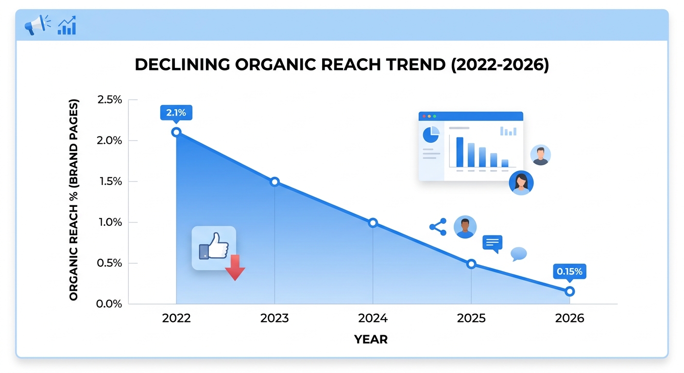 根据 Socialinsider 2026年社媒基准报告,Facebook品牌账号的平均互动率已经跌至 0.15%,并且仍在持续下滑。