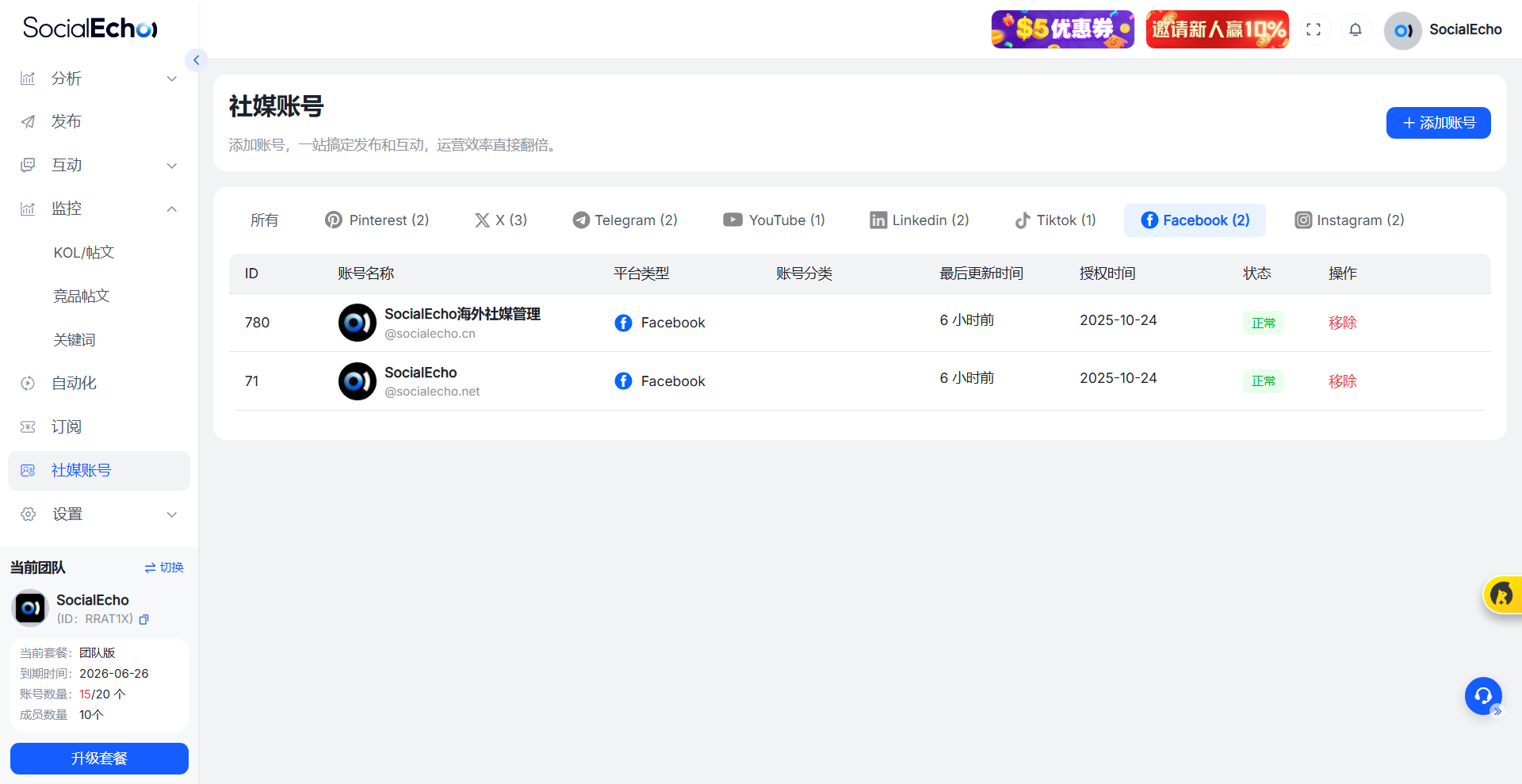 利用好 SocialEcho 的账号管理稳定性、聚合互动的效率以及数据看板的预警能力,你其实就已经构建了一套最基础的"防封体系"。限流其实是平台在提醒你:嘿,该停下来好好服务你的用户了。听它的话,流量自然会回来。