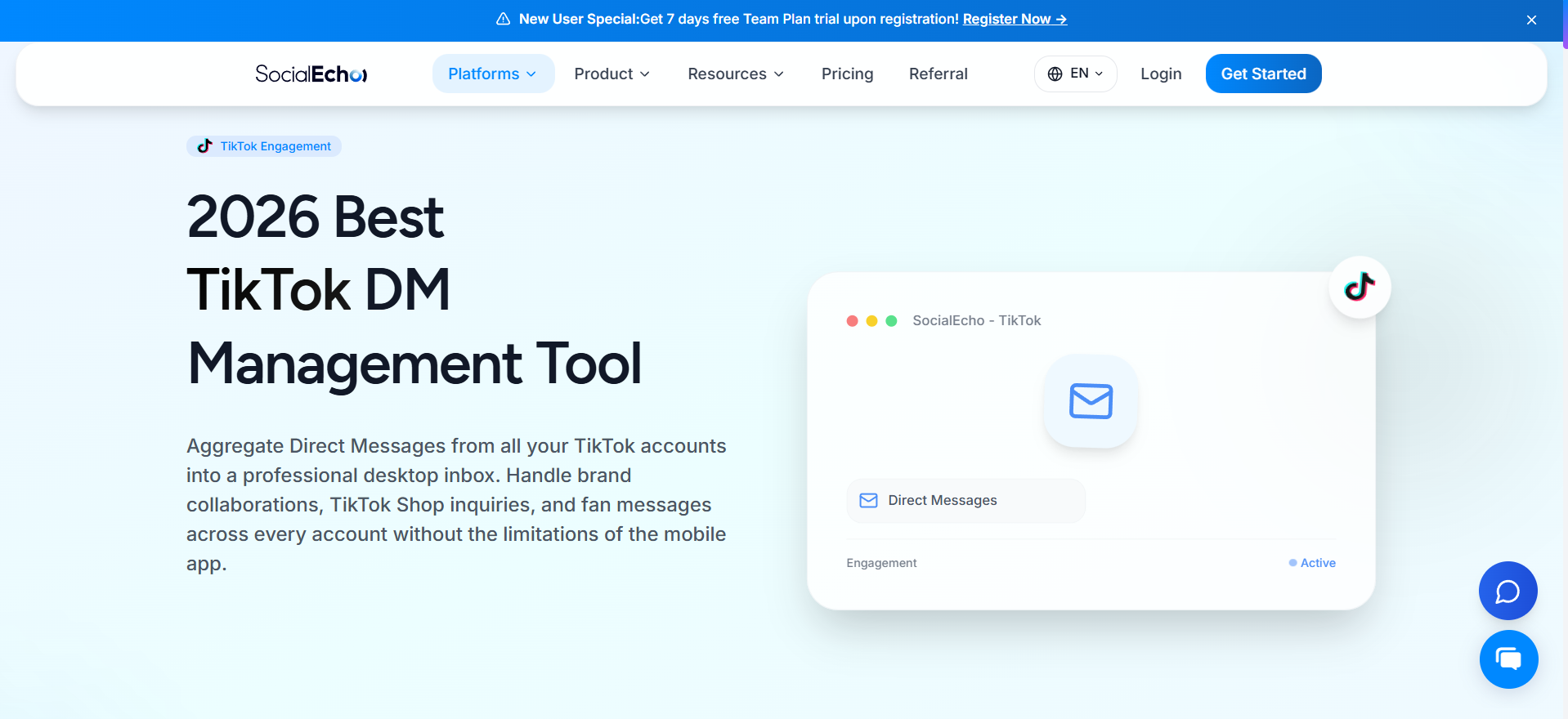 SocialEcho 方案 :TikTok 私信自动化培育流程 。